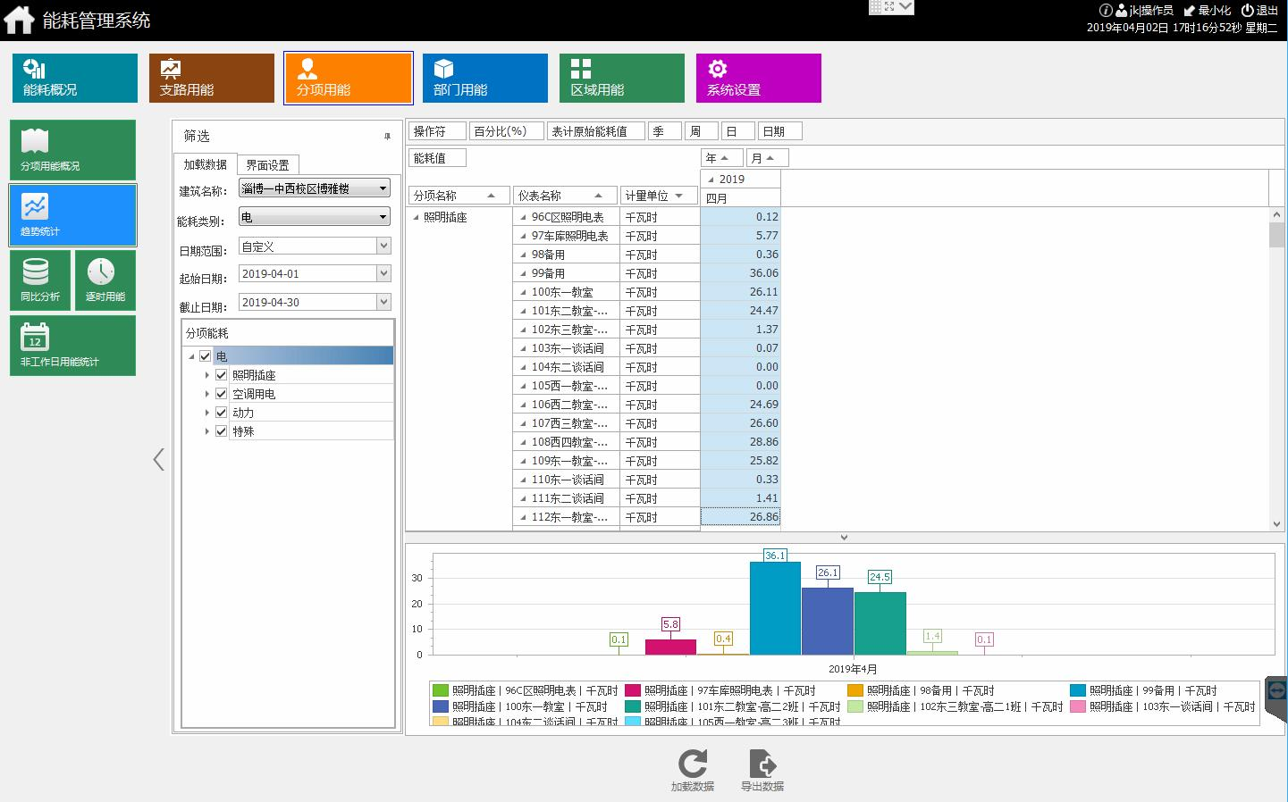可靈活選擇支路,并統計某段時間內支路用能的日、月、周、季、年用能;