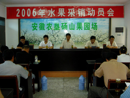 2006年水果采銷工作將全面拉開帷幕,為確保采銷工作的順利進行,8月12日,碭山果園場召開水果采銷工作會議,全場各級管理人員參加了會議。會議就如何做好今年的水果采銷工作進行了具體部署,要求各單位主要領導務必根除以租代管、以收代管的思想,充分發揮國有農場“統”的功能和優勢。各級管理人員要提高認識,增強服務意識,努力做好采銷工作。