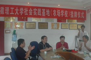 7月12日上午,安徽理工大學社會實踐基地落戶淮南農場,上午9:30在喜慶的鞭炮聲中,掛牌儀式隆重舉行。場黨委副書記、紀委書記張文權和安理大工程機械系黨總支書記王教授出席掛牌儀式。儀式結束后,農場有關負責人向安理大師生介紹了淮南農場的工農業生產情況和社會主義新農村建設的思路與舉措。 安理大社會實基地落戶淮南農場將有利于提升農墾知名度,擴大社會影響,促進農場科技進步、和諧發展。