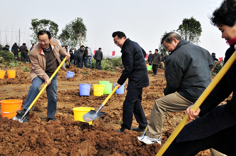 草長鶯飛,春回大地。3月12日植樹節(jié)這天,安徽農(nóng)墾集團(tuán)在位于合肥市蜀山區(qū)南崗鎮(zhèn)的“安徽皖墾生物科技高效農(nóng)業(yè)示范園”內(nèi)舉行了大規(guī)模植樹活動。活動由王占廷副總經(jīng)理主持,李卓民總經(jīng)理致辭,田文俊董事長宣布植樹活動正式開始。省農(nóng)墾集團(tuán)領(lǐng)導(dǎo)、合肥市副市長江洪、省林業(yè)廳副巡視員唐麗影以及省農(nóng)委、蜀山區(qū)、皖墾種業(yè)、皖墾茶業(yè)、黃山大廈、通和房產(chǎn)有關(guān)領(lǐng)導(dǎo)和集團(tuán)機(jī)關(guān)全體員工100余人參加了義務(wù)植樹造林活動。
