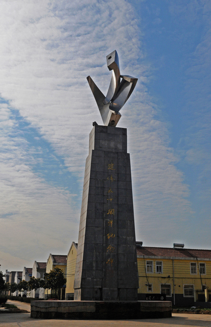 農(nóng)場場部小城鎮(zhèn)座落地為梅山。走進梅山新城,南北和東西縱橫兩條寬闊平坦的主干道交匯處,聳立著場部小城鎮(zhèn)地標性雕塑“創(chuàng)業(yè)犁鏵”,它是方邱湖人60余載奮斗歷程的紀念,更是他們不斷開拓未來的信念。三片犁鏵那純銀般的光芒,恰似燃燒不滅的農(nóng)墾精神之火,讓每一位從此路過的人駐足景仰。