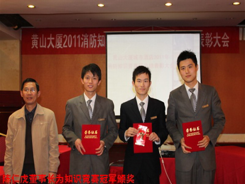 為了貫徹落實上級關(guān)于開展清剿火患的工作要求,今年11月,安徽農(nóng)墾黃山大廈城市酒店開展全員安保技能比賽暨消防安全月活動,取得了一系列活動成果,并于12月3日下午舉行消防知識競賽暨消防安全月總結(jié)表彰大會。省農(nóng)墾集團副總經(jīng)理、黃山大廈酒店管理有限公司董事長陳仁虎,酒店管理公司總經(jīng)理王健等領(lǐng)導(dǎo)同志出席會議。