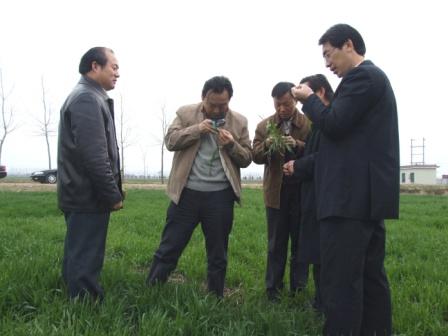 在場長、黨委書記楊俊宇、副場長程希文等陪同下,李卓民總經理一行深入田間,對小麥受凍情況進行詳細察看,李總經理隨即抽取部分田塊、不同品種的麥苗,并用放大鏡仔細觀察小麥主莖受凍情況。經過多個品種小麥的仔細觀察,認為,此次凍害十分輕微,對龍亢農場小麥生長無礙。
