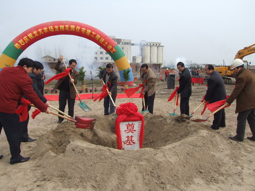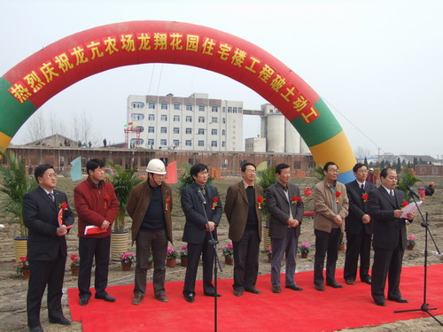 春風送暖,萬物復蘇。3月12日,龍亢農場龍翔花園職工住宅樓工地上彩旗飄揚,鞭炮齊鳴,鑼鼓喧天,當最后一锨黃土覆蓋住奠基石碑,宣告惠及全場職工福祉的德政工程——龍亢農場社會主義新農村建設龍翔花園職工住宅樓正式開工。集團公司領導田文俊、李卓民、劉超、李家堂、集團公司各處室負責同志、場領導楊俊宇、朱為榮、張建民、劉梅、李應河、程希文、全體機關工作人員、農業分場干部、雁湖面粉公司部分領導、監理單位代表、施工單位代表以及部分場區職工群眾等參加奠基儀式,場黨委副書記張建民主持開工奠基儀式。