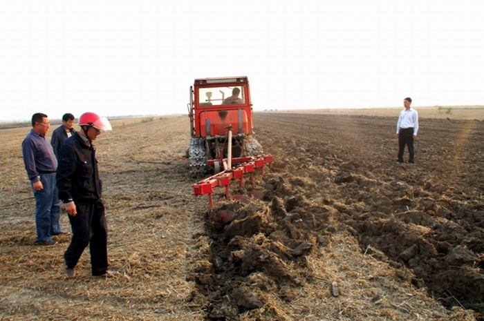 在深松整地作業中,各級領導高度重視,工作準備充分、扎實有效,政策支持力度大,農場撥付專款用于考察、試驗和購置深松機具,為任務完成提供了堅實的物質基礎保障。該場在進行多次試驗的基礎上,結合農場土壤屬性,選擇適宜并改進機具,解決了砂礓黑土深松整地作業難的問題,場領導小組成員堅持每天到現場進行質量驗收,保證了深松整地作業質量。