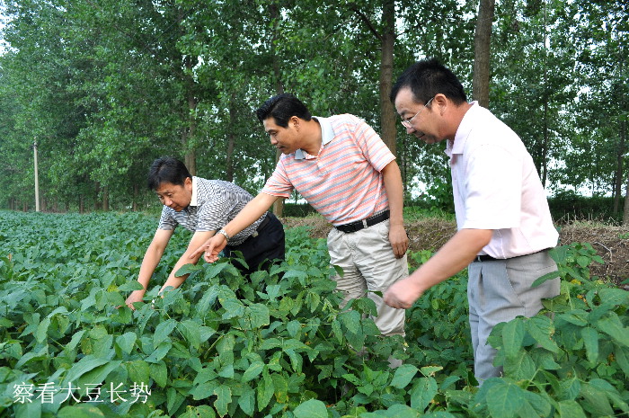八月的潘村湖農場,滿目蔥蘢,生機盎然,3.2萬畝大田里,大豆、水稻、玉米等秋季作物孕育著豐收的希望。在黑板橋頭,王占廷走進一塊大豆田,仔細察看莊稼長勢,柏華勝場長介紹說,今年是潘村湖農場實行大豆統一供種的第2年,由于種子質量上乘,加之最近兩個月當地雨水豐沛,全場在地作物長勢良好,但個別地塊也還有因群體過大而影響結莢數的情況。王占廷撥開身旁茂盛的豆棵,細細察看結莢情況,高興地說,這塊地的大豆結莢數還不錯,而且沒發現什么病蟲害。農場黨委書記林賢傳匯報道,今年職工家庭農場防治大豆病蟲害的積極性很高,同時由于近階段降水頻繁、雨量較大,在一定程度上抑制了地下害蟲對大豆的危害。