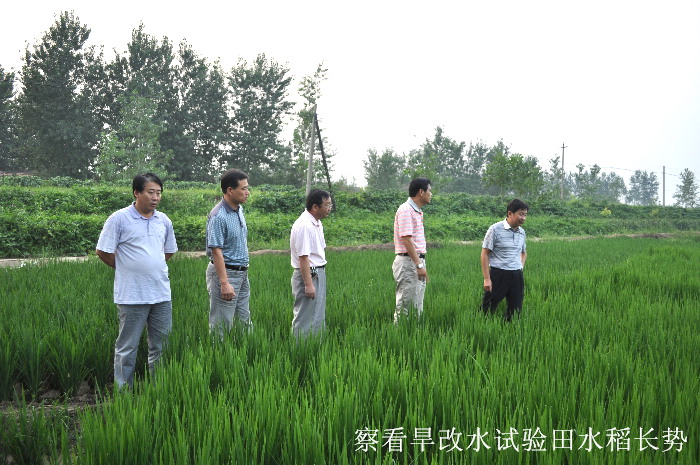 王占廷一行又來到第二農管區旱改水試驗田,沿著田埂走到稻田深處察看水稻生長情況。林賢傳介紹說,今年午季農場通過土地流轉的方式,拿出105畝進行旱改水試驗,嘗試了機插秧、旱直播、旱稻及人工插秧等多種栽種方式,品種也選了好幾個,主要是為了以點帶面、積累經驗。看到眼前生機勃發的稻田,王占廷稱贊道,種植結構調整就是要解放思想、敢為人先,不能患得患失、裹足不前,農場要鼓勵扶持職工大膽嘗試,這塊水稻田長勢比較好,只要管理措施到位,產量水平應該不算低的。