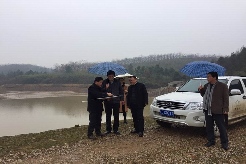 1228,省民政廳社會事業處張亞平處長帶領蕪湖市、縣民政部門負責人,冒著冷風冬雨,到皖墾茶業集團位于九連山茶場的生態文化陵園項目,調研指導籌建工作。