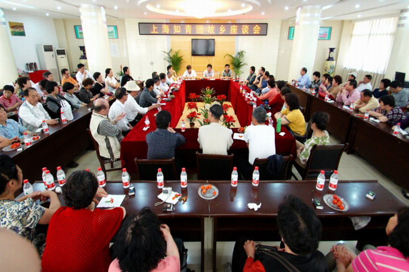 下午2時,張建民全程陪同知青們參觀回訪了老一連至九連和農科所、農場城鎮,《龍騰報》和有線電視臺記者一路跟訪。下午5時許在食品集團會議室舉行了“上海知青回故鄉座談會”。知青們欣賞了農場制作的MTV《安徽農墾之歌》、《播種希望》和龍亢農場50周年專題宣傳片。當年安徽亳州下放知青、現任食品集團黨委副書記的張建民介紹了龍亢農場的歷史變革,尤其是知青返城后,農場通過現代農業科技創新、產業化發展、城鎮和園區建設的示范帶動,現已發生了翻天覆地的變化。座談中,知青們踴躍發言,暢談逝去的歲月,暢談戰友間的情誼,暢談人生的歷練,暢談農場翻天覆地的變化……每個人都有說不完的心里話,激動的情感溢于言表。全體知青把書寫著“鴻業騰飛”的燙金匾牌和“舍不去故土鄉思 割不斷農場情結”的旌旗敬獻給了食品集團(龍亢農場)。
