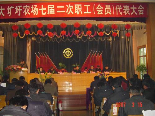 會議還聽取了場黨委副書記、工會主席楊朝幸同志作的題為《圍繞工作中心,堅持“雙向維護,充分發揮工會在構建和諧農場中的積極作用》的工會工作報告,聽取了施廣慶副場長作的《大壙圩農場職工獎懲暫行辦法》、殷文格副場長作的《農業生產經營管理辦法》以及有關同志作的農場財務、招待費、福利費使用情況、職工民主視察、工會經費審查的等報告內容。