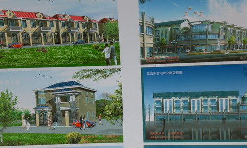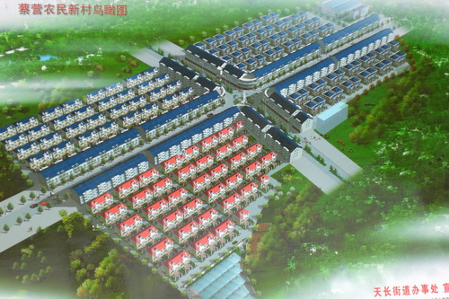 為促進新農村建設加快發展,大壙圩農場本著互惠雙贏的原則,就新農村共建問題主動與地方有關部門多次溝通洽談,并就諸多問題達成共識,:農場和新農村規劃區將對交通、下水道、自來水、電力、電信、通訊等相關輔助設施實行資源共享、共同建設,農場將發揮現有資源優勢,積極為新農村建設提供服務;農場職工可以到蔡營新農村小區購置房屋居住,享受蔡營村村民同等待遇。圖為:蔡營村新農村規劃區鳥瞰圖和小區建筑模型圖。