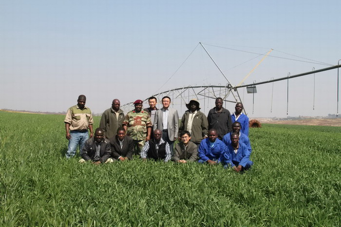 7月27日,津巴布韋農(nóng)業(yè)部秘書長Masoka一行4人訪問考察了皖津公司溫亞尼和SISI農(nóng)場,安徽農(nóng)墾皖津農(nóng)業(yè)發(fā)展公司董事長韓大鳴、副董事長D·伊柯阮姆巴將軍、副總經(jīng)理F·拓扎伊上校給予了熱情接待。Masoka對皖津農(nóng)場當(dāng)前小麥長勢表示贊許,認為,皖津公司經(jīng)營團隊管理工作扎實高效,經(jīng)營計劃腳踏實地,背靠中國巨大的供應(yīng)市場,面向津國廣闊的消費市場,開展多種經(jīng)營的優(yōu)勢明顯。Masoka表示,津國政府相關(guān)部門將積極配合并幫助皖津公司完備相關(guān)法律手續(xù),他還就未來小麥銷售提出了合理化建議。