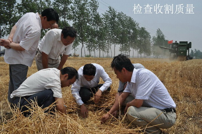 在七分場5號地北,8臺大馬力收割機正在展開局部機收會戰,其中一臺飄揚著“黨員先鋒號”紅旗的機車更是分外醒目。在“先鋒號”機車駛過之后,李卓民走到剛剛收割過的地方,扒開麥秸,察看田間是否撒漏麥粒。“收得很干凈,不愧為黨員先鋒號。”他稱贊道。黨委書記林賢傳介紹說,今年場黨委在全場設立了7臺“共產黨員先鋒號”機車,將開展創先爭優活動與農場中心工作結合起來,在生產工作中發揮黨員的先鋒模范作用。李卓民對農場創新創先爭優活動載體,促進午收夏種工作優質高效開展的做法表示贊賞。
