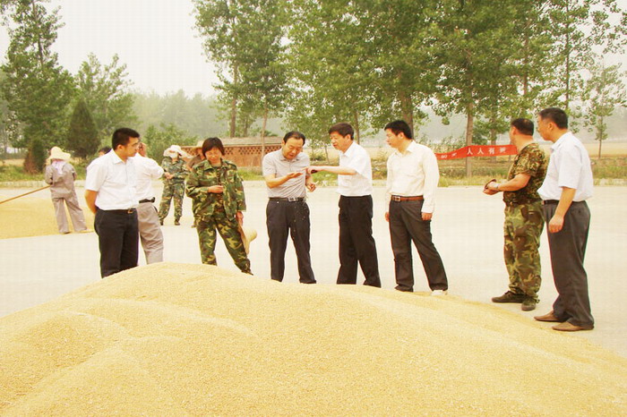6月9日上午,李卓民一行來到夾溝農場,適逢該場小麥正式開鐮,便在場領導陪同下深入到各個分場,詳細察看了田間收割狀況和曬場上已收獲小麥籽粒情況,并同分場管理人員進行了交流。當看到田間收割機正開足馬力搶收、收上來的小麥色澤鮮亮籽粒飽滿、干部職工精神煥發干勁十足時,他非常高興,并要求大家要密切關注天氣變化,立足“搶”字不動搖,發揚連續作戰精神,力爭在2到3天里迅速地把全場小麥搶收上來,確保顆粒歸倉,確保種子數量和安全。