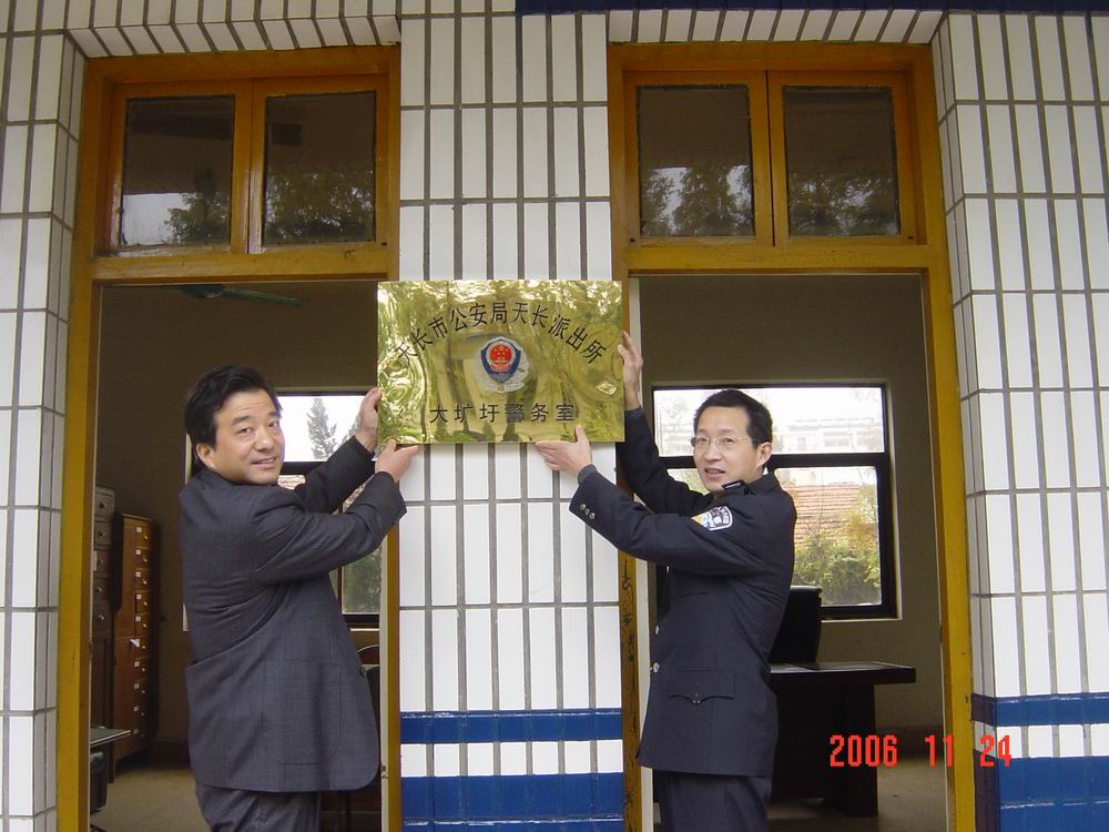 最近,天長市公安局在機構整合過程中,撤消了設在大壙圩農場場部的原天長市公安局大壙圩派出所。為了維護社會治安和農場穩定,保障一方平安,天長市公安局決定在大壙圩農場設立“天長派出所大壙圩警務室”。11月24日,天長市公安局天長派出所領導來農場為“大壙圩警務室”掛牌,場黨委副書記楊朝幸代表農場參加了掛牌儀式。圖為:楊朝幸副書記和天長市公安局天長派出所所長桑科共同為“大壙圩警務室”掛牌。