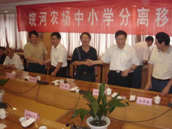 由于人員多、規模大等諸多原因,皖河農場中小學分離移交工作一度遲緩。場黨委針對農場教育分離移交的實際,將移交工作作為“一號工程”來抓,并制定了一系列的措施和預案,保證了教育移交和正常教學兩不誤。場長張陽就任后,親自過問移交工作,副書記邵乃昌具體抓、負實責,多方奔波、協調,加強和市、區政府、部門的聯絡和對接,做了大量艱苦有效的工作。省國資委的領導對皖河的教育移交傾注了大量的心血,給予了傾力支持。集團公司劉超副總經理數次帶隊冒嚴寒、頂酷暑,奔赴安慶及大觀區,一方面現場辦公,解決實際問題,安撫移交人員;另一方面協調、對接、商談,及時調整移交方案,最終為移交打開“綠色通道”。在這個過程中,集團公司社區處的領導對移交工作給予了具體的指導。
