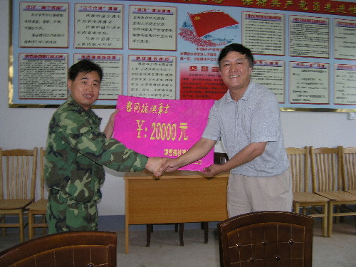在建軍80周年到來之際,為表達全場干部職工對前來支援淮河抗洪搶險戰斗的人民子弟兵的敬意,潘村湖農場黨委書記、場長韓大鳴,副場長陶衛東率場有部門同志于7月23日上午冒雨來到73092部隊潘村駐地,看望慰問了全體指戰員,并送去慰問金20000元。