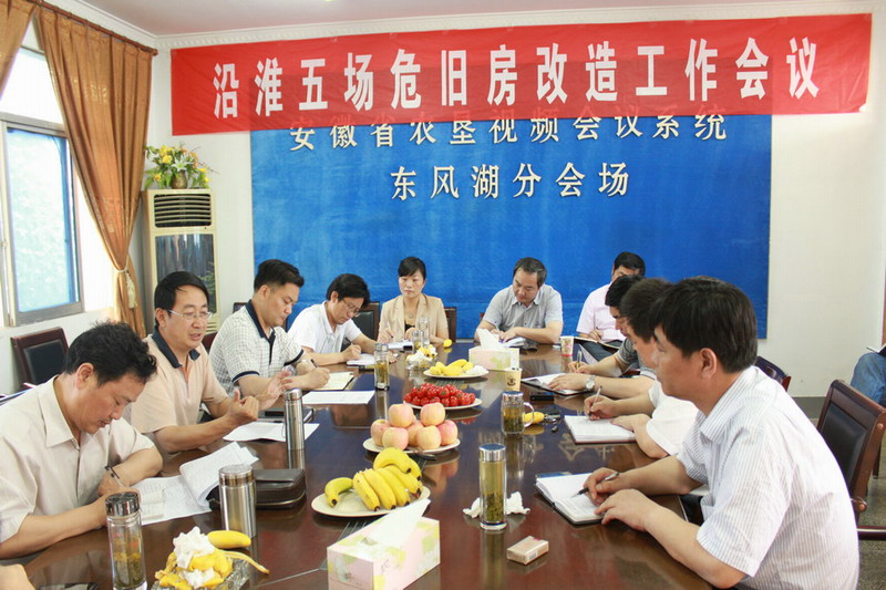 531,安徽農墾集團副總經理劉超在東風湖農場主持召開沿淮五場危舊房改造工作會議。壽西湖、正陽關、淮南、水家湖、東風湖等5個農場和集團公司相關部門、現代農業工程安徽農墾集團負責人參加了會議。