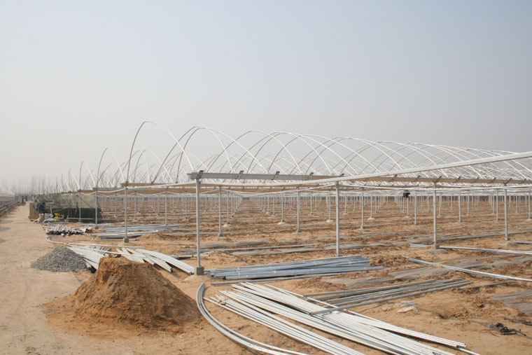安徽農(nóng)墾碭山果園場繼去年11月一期35畝連棟大棚建成驗收后,年底開始建設的二期連棟大棚已完成定苗,目前正加緊搭建棚架,形成了安徽皖北地區(qū)規(guī)模最大的連棟大棚現(xiàn)代農(nóng)業(yè)示范園區(qū)。