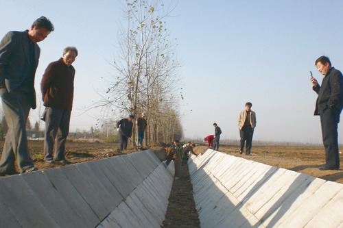 根據規劃設計,支渠硬化采用6cm厚C20砼預制塊襯砌(見圖)。施工過程中,施工單位嚴格按照每條溝渠所設計的底寬、渠深和坡比要求規范施工,確保質量。據了解,支渠襯砌硬化工程計劃在12月中旬全面竣工。