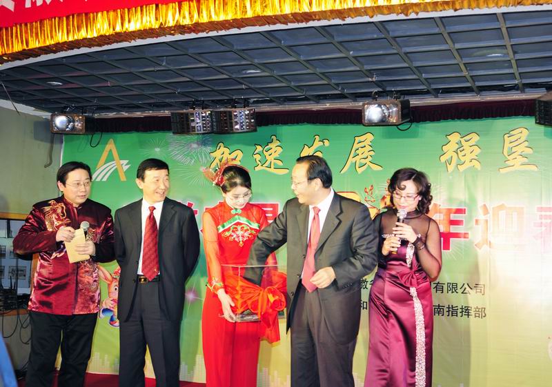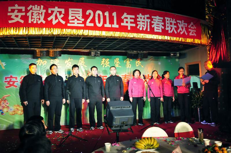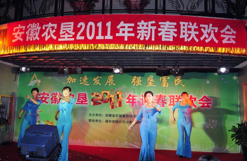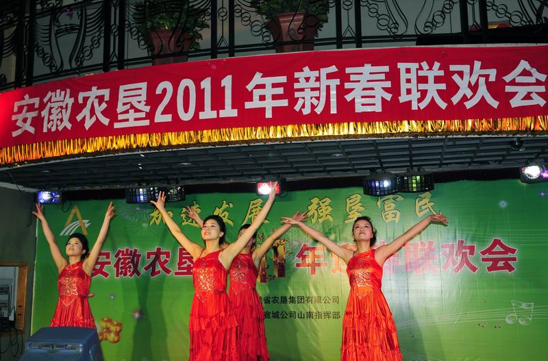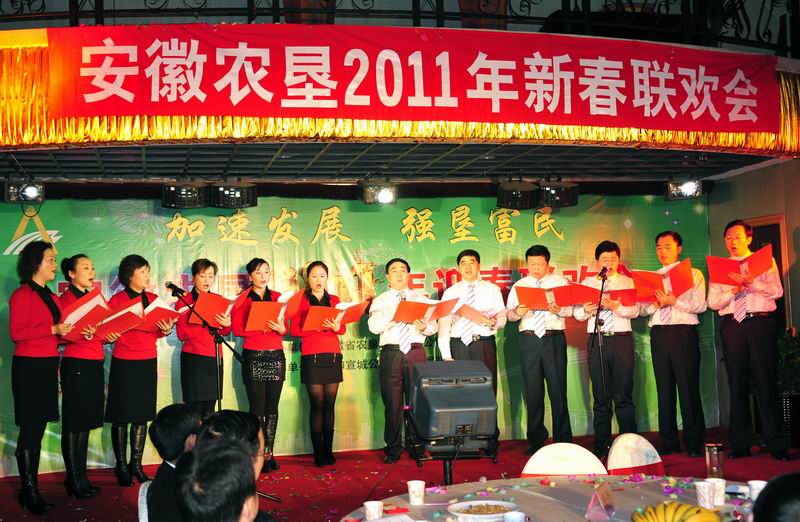 潮涌皖墾千帆競,一元復始繪新景。新春伊始,1月17日下午,一臺由省安徽省農墾集團公司主辦、安徽通和宣城公司山南指揮部贊助的 “安徽農墾2011年新春聯歡會”在省農墾新長城大酒店隆重舉行,聯歡會在一曲歡快的《好日子》歌舞拉開了大幕,省農墾集團公司領導班子首先集體合唱了《喀秋莎》《走進新時代》《大坂城姑娘》三首歌曲,掀起了聯歡會的第一個高潮,接著來自集團公司機關各部室和在肥企業工作人員,表演了自編自演或改編的歌舞、小品、詩朗誦、大合唱等節目,內容豐富生動,藝術感染力強,熱情謳歌了安徽農墾經濟社會發展的成就和農墾人幸福生活指數的日益增長,精彩紛呈的表演不時引起全場熱烈的牚聲,前來參加全省農墾工作會議的墾區各農場、公司的領導一同觀看了演出。聯歡會上還不時穿插著互動游戲和抽獎活動,聯歡會熱烈奔放,高潮迭起,最后聯歡會在機關部室負責人組成的合唱組的高亢的《英雄贊歌》、《歌唱祖國》歌聲中結束。