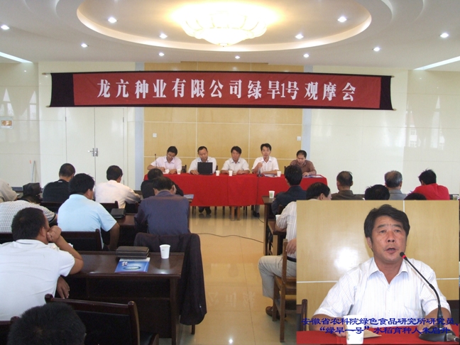 觀摩會上,各位水稻專家分別介紹了“綠旱一號”高產栽培技術、節水高效栽培技術研究情況、壽西湖農場栽培生產經驗、栽培注意事項等情況,龍亢種業公司總經理程希文介紹了“綠旱一號”的生產及銷售情況,并展望了良好的銷售前景。