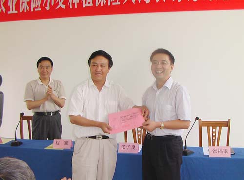 200872,安徽省國元農業保險股份有限公司董事長張子良、公司總裁助理張福銀等一行數人來到夾溝農場,對今年午收期間該場2000多畝受災小麥進行了理賠。省農墾集團公司副總經理程軍出席理賠儀式,夾溝農場場長韓大鳴代表受災職工接受了國元農業保險20多萬元的理賠款。