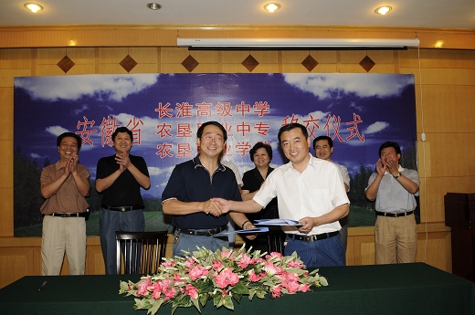 在省委省政府的高度關(guān)心重視下,在省國資委、省財政廳、省教育廳、省人事廳、省勞動和社會保障廳、省編辦的大力支持下,安徽省長淮高級中學(農(nóng)墾職工中專學校、職業(yè)學校)今天正式移交給長豐縣人民政府。7月7日上午,由省國資委牽頭監(jiān)交和合肥市人事局的見證下,省農(nóng)墾集團公司副總經(jīng)理劉超受省國資委托主持了儀式并代表農(nóng)墾集團公司與長豐縣人民政府常務副縣長沈成富共同在合肥簽署了安徽省長淮高級中學(農(nóng)墾職工中專學校、職業(yè)學校)移交協(xié)議。