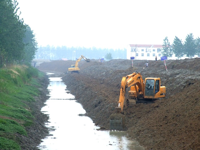 連日來,在農業部中強筋小麥良種基地項目工程龍亢農場中心溝清淤工地上活躍著兩臺大馬力挖掘機,每天開足馬力作業,全場職工為之拍手稱快。