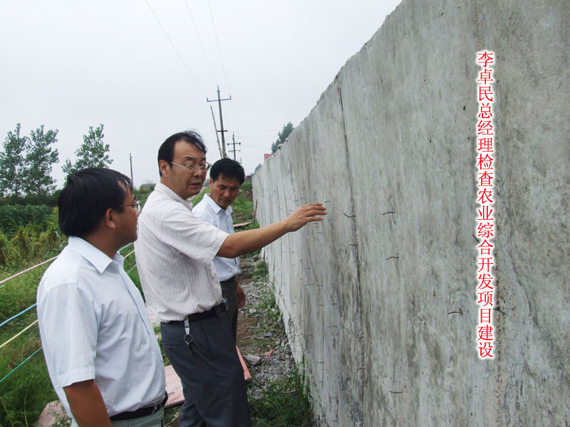上午,李卓民總經(jīng)理一行深入到一場、二場田間地頭,查看棉花、水稻等農(nóng)作物長勢,他一邊走一邊詢問農(nóng)場今年的生產(chǎn)形勢、作物布局、結(jié)構(gòu)調(diào)整等方面的情況,并及時提出指導(dǎo)性意見。在2009年度農(nóng)業(yè)綜合開發(fā)項目施工現(xiàn)場,李卓民總經(jīng)理囑咐大家要把工程質(zhì)量抓好,發(fā)揮工程的最大效益。下午,李卓民總經(jīng)理到二場及四場二級防汛堤段檢查防汛工作,看到職工們在湖堤上查巡堤、進行險段處理,對他們表示親切問候,同時要求他們加強值班巡邏,及時處理險情,以確保大堤安然度汛。他的一言一行使大家深受鼓舞,表示要堅決守護好大堤。