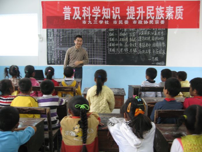 當天上午,一場“送科技”活動正在三益分場境內的馬店回民小學校園里進行著。市九三學社主委、安慶師范學院教授胡萬寶博士為全體回民師生上了一堂別開生面的科普講座,師生們每人還獲得了一份《民族團結宣傳教育材料》。