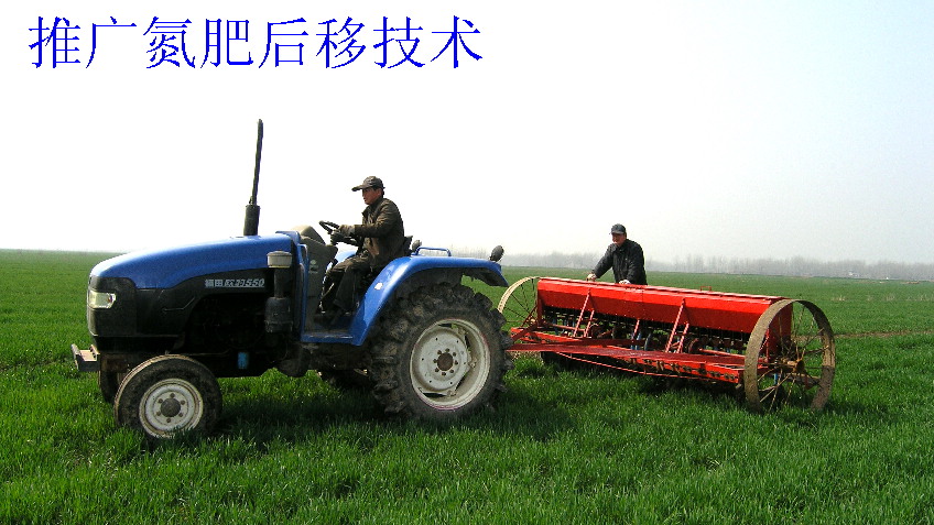 在六分場一塊大田,職工陳普選正在追施氮肥。看到童俊等農(nóng)技人員走近,陳普選停下機(jī)具問道:“現(xiàn)在播肥遲不遲?”童俊拔起一株麥苗看了看說道:“現(xiàn)在播施氮肥正當(dāng)時,播早了并不好,適度的氮肥后移對小麥增產(chǎn)很重要。”