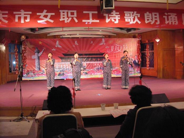今年是農(nóng)墾成立60周年,皖河農(nóng)場(chǎng)工會(huì)抓住“三八節(jié)”這個(gè)節(jié)點(diǎn),組織女職工開(kāi)展朗誦會(huì)、歌詠會(huì)等系列活動(dòng),回顧農(nóng)場(chǎng)的滄桑巨變,謳歌農(nóng)墾創(chuàng)業(yè)精神,反映女職工的精神風(fēng)貌。圖為農(nóng)場(chǎng)女工在安慶市總工會(huì)舉辦的朗誦比賽上表演自己創(chuàng)作的詩(shī)歌《農(nóng)墾之歌》。