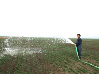 去年12,農場采取了漫灌和噴灌相結合的方式,對全場3萬小麥科學組織開展了冬灌工作,目前,全場絕大多數小麥一片蔥郁、長勢良好。由于農場西部邊陲的一分場相對地勢較高,水利條件相對薄弱,漫灌小麥的條件不足,致使4000余畝小麥未能徹底“解渴”,持續發展的旱情再次威脅著一分場的小麥生長。針對持續發展的旱情,該場農業部門再次動員部署小麥冬灌工作。春節假期以來,有關干部主動放棄休息時間,與一場職工一道再度迅速掀起了小麥冬灌熱潮。一方面,有關干部組深入農戶家中大力宣傳抗旱的重要性和迫切性,組織職工全面落實小麥冬灌技術措施,并深入田間指導協調冬灌工作;另一方面,一分場職工不等不靠,克服資金緊張等不利條件,利用現有的機井、小口井等水源條件,科學有序地開展小麥冬灌。同時,一分場還因時制宜,引導職工對弱苗田塊采取“肥水齊下”的農技措施,為全面實現小麥高產攻關目標打下堅實基礎。