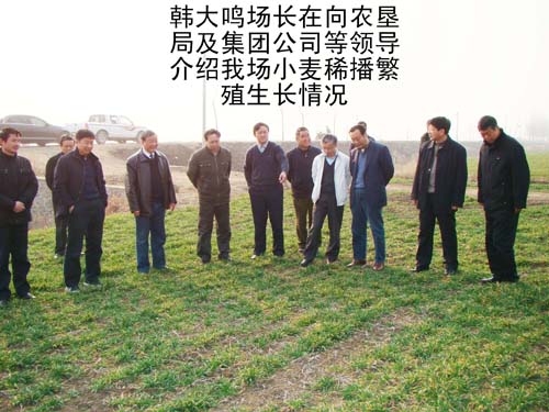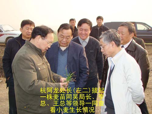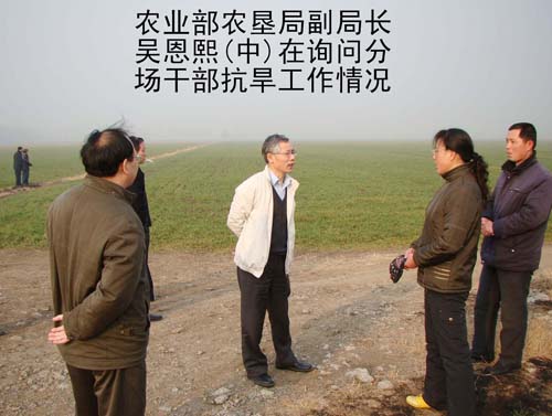 2009年2月12日,農業部農墾局副局長吳恩熙、農墾局農業處處長杭阿龍,在省農墾集團公司總經理李卓民、副總經理王占廷、集團公司農水科技部李運濤部長的陪同下,來到我場檢查督導小麥抗旱工作,并作了重要講話。場領導韓大鳴、溫廣信、孫家平、牛泉清等同志全程陪同。