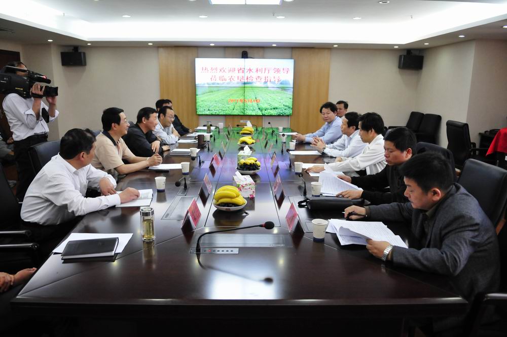 5月4日下午,安徽省水利廳廳長紀冰、副廳長張肖率有關處室負責人來到農墾集團,商討安徽墾區十二五水利發展大計。農墾集團董事長田文俊,總經理李卓民,副總經理劉超、王占廷以及相關部室負責人參加了座談。