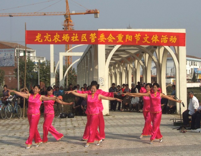 為隆重慶祝重陽節,在全場營造敬老愛老助老的良好社會風氣,社區管委會舉辦了此次“九九”重陽節文藝演出。演出的節目包括舞蹈、歌曲、戲曲、太極劍等。青年演員用歡快的歌聲和優美的舞姿,謳歌了農場敬老愛老助老的優秀傳統美德;老年演員用鏗鏘不老的唱腔和高亢激昂的旋律塑造了他們“人老不失戎馬志,余熱生輝耀九重”的人生追求,表現了他們對晚年美好幸福生活的贊譽……演員們精彩的表演不時博得現場觀眾的熱烈掌聲。整場演出頌揚了龍亢農場老齡事業的蓬勃發展,體現了龍亢農場老年人老有所養、老有所樂、老有所為的精神風貌。
