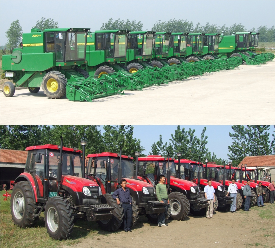 龍亢農場現已擁有大型拖拉機240臺,其中80馬力以上輪式拖拉機48臺,包括秸稈粉碎機、旋播機等新型農具在內的各類先進農具700多臺套,收割機108臺,機械總功率達21000多千瓦,雄厚的機械裝備為農場現代農業的發展添加了巨大引擎。僅農場二分場目前就擁有75馬力以上的輪式拖拉機19臺,并配套了旋播、鎮壓機等先進農具,這些農機具“一條龍”作業時,在不足60個小時的時間內就可以完成分場5000余畝耕地的整地、旋播、覆種、鎮壓工作。