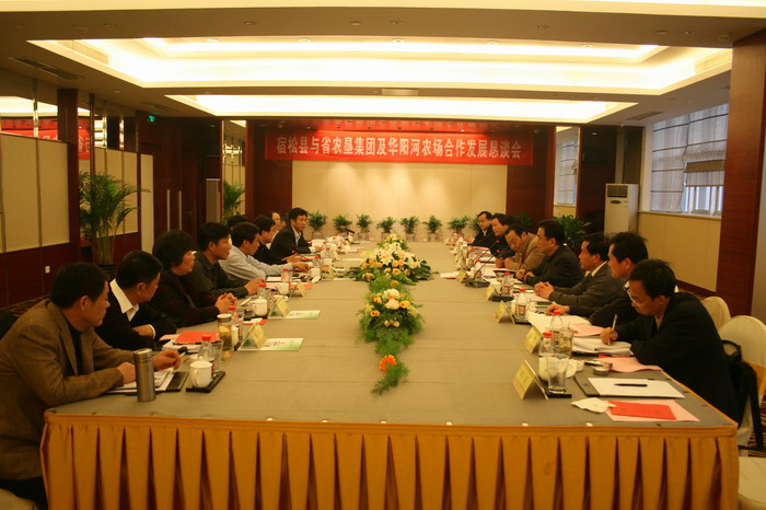 為加快皖江城市帶承接產業(yè)轉移示范區(qū)建設,2010年4月10日下午,宿松縣與省農墾集團公司及華陽河農場在合肥黃山大廈共同召開了“宿松縣與省農墾集團及華陽河農場合作發(fā)展懇談會”,共商合作共建安徽宿松臨江產業(yè)園及濱江小城市建設有關事項。懇談會由省農墾集團公司副總經理程軍和宿松縣委書記、縣人大常委會主任張小青共同主持,省農墾集團公司總經理李卓民,宿松縣委副書記、縣長王華,華陽河農場場長唐邦水等有關方面負責同志參加了會議。會議圍繞對接皖江城市帶承接產業(yè)轉移示范區(qū)規(guī)劃,進一步深化墾地合作,加快推進安徽宿松臨江產業(yè)園和華陽河農場及復興鎮(zhèn)建設進行了友好洽談,達成了基本共識。