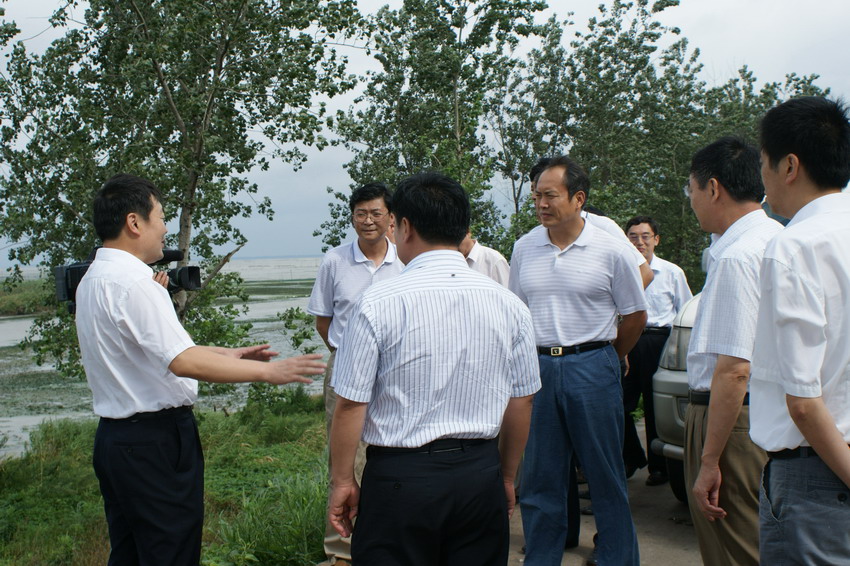 8月11日下午,省水利廳方志宏副廳長率領省防臺第四督查組在滁州市及天長市有關領導的陪同下,到大壙圩農場高郵湖責任段檢查指導防防御8號臺風工作。