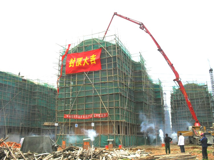 5月9日,陽光明媚。水家湖農(nóng)場(chǎng)第一期廉租房項(xiàng)目工程施工現(xiàn)場(chǎng)一派熱鬧景象,上午8時(shí)許,隨著陣陣爆竹和禮花聲,商砼攪拌打漿機(jī)的長臂高高伸向五樓頂層,3棟樓房相繼封頂,標(biāo)志著該場(chǎng)一期廉租住房主體工程進(jìn)入掃尾階段,各樓層將相繼封頂。