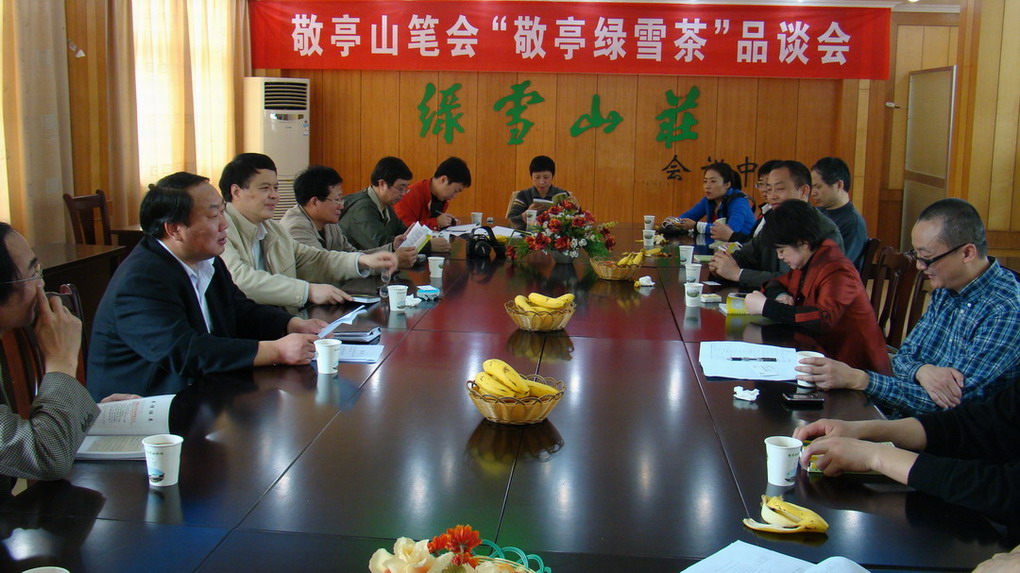 省農(nóng)墾集團(tuán)公司副總經(jīng)理、皖墾茶業(yè)集團(tuán)董事長(zhǎng)劉超給此次筆會(huì)采風(fēng)活動(dòng)發(fā)來(lái)了熱情洋溢的賀電,在賀電中對(duì)來(lái)皖墾茶業(yè)集團(tuán)采風(fēng)的作家們表示歡迎,并預(yù)祝采風(fēng)活動(dòng)圓滿成功。皖墾茶業(yè)集團(tuán)總經(jīng)理孫國(guó)安主持了敬亭綠雪茶品談會(huì),他向來(lái)賓們介紹了皖墾茶業(yè)集團(tuán)基本情況,重點(diǎn)圍繞名山、名茶、名人介紹了歷史文化名茶敬亭綠雪,并與作家朋友們展開(kāi)了熱烈的暢談交流。