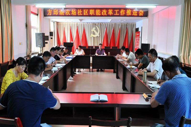 723,方邱湖農場黨委書記、社改組組長李朝欽主持召開專題會議,部署推進社會職能改革工作。社改組及辦公室成員、相關部室負責人參加會議。