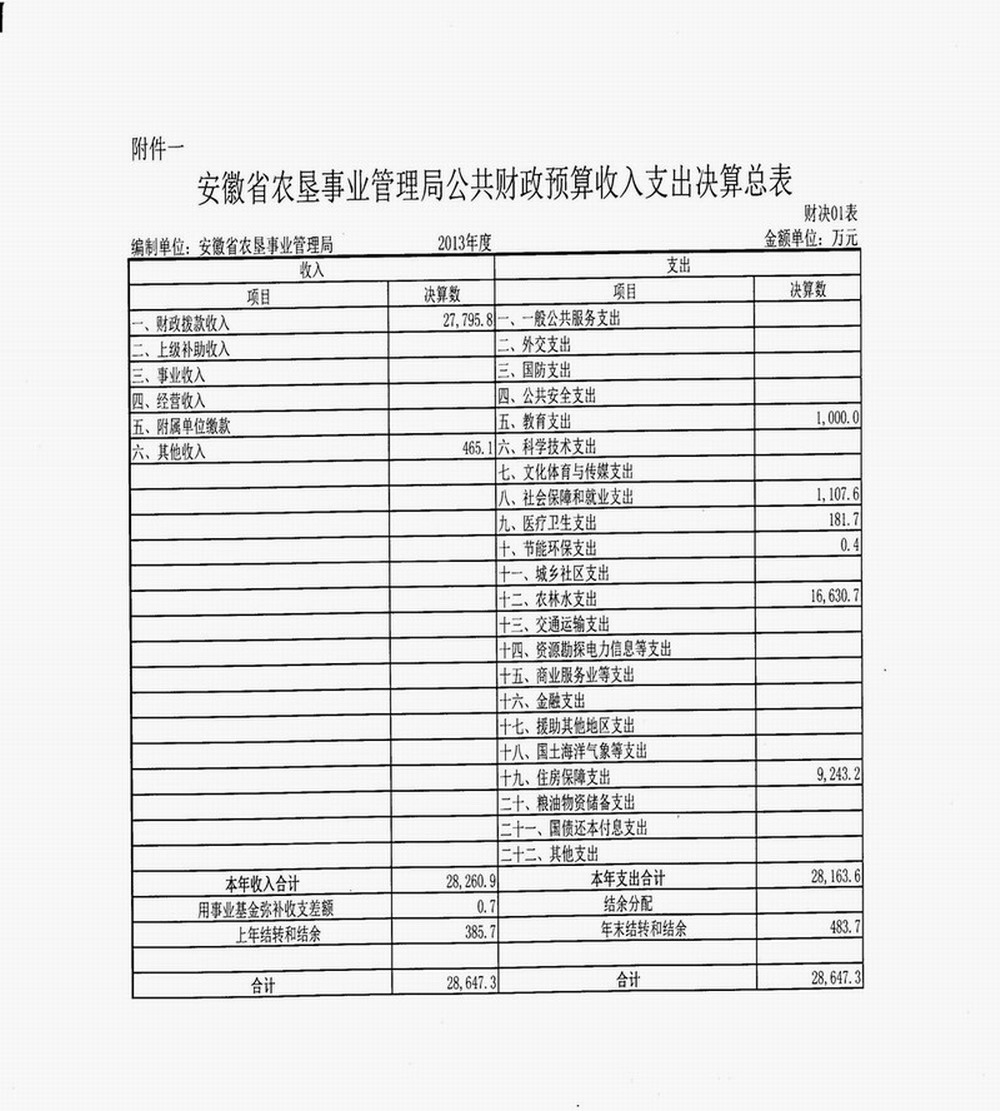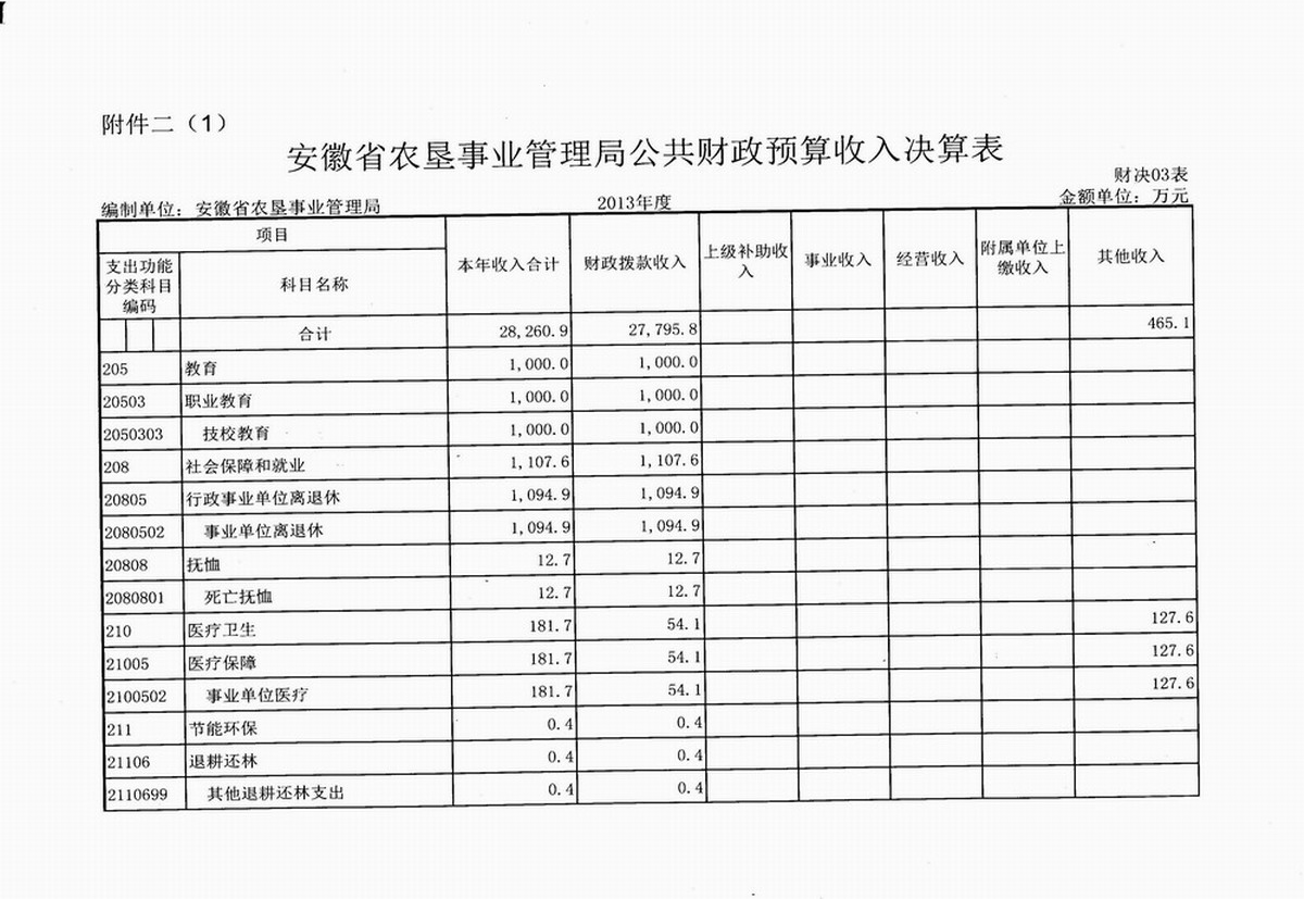 附件:1. 安徽省農(nóng)墾事業(yè)管理局公共財政預算收支決算總表