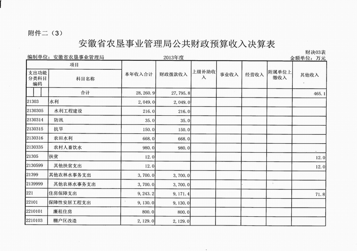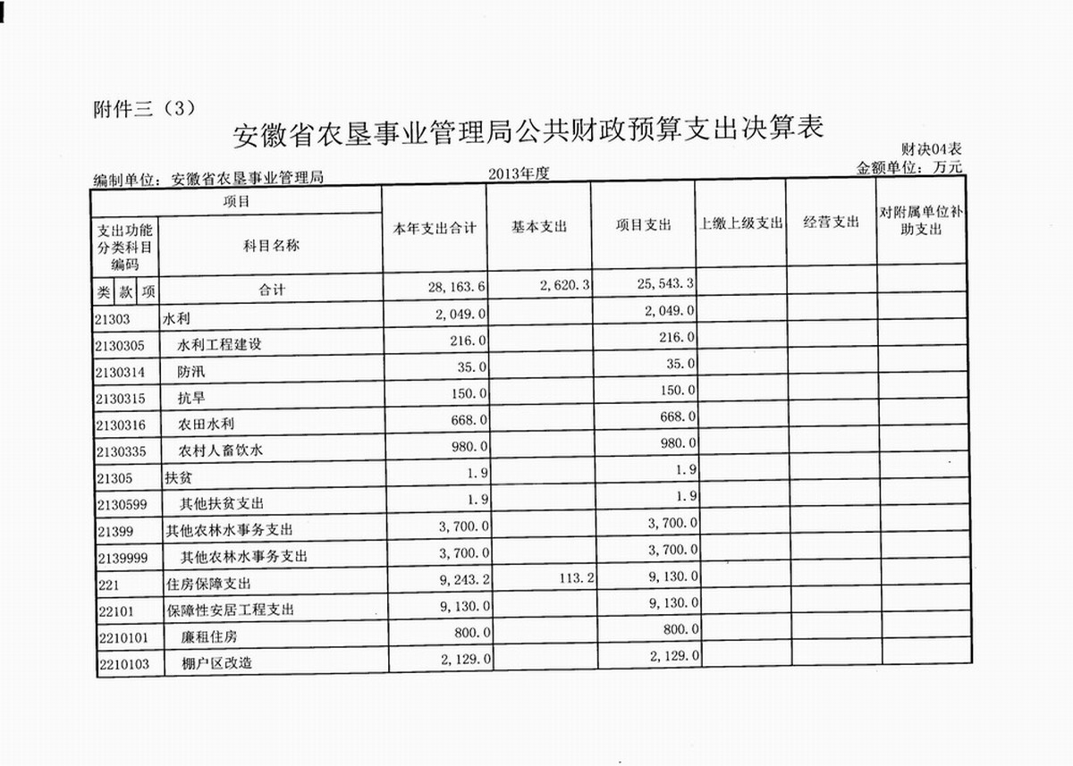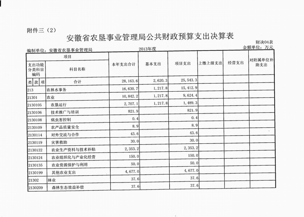 3. 安徽省農(nóng)墾事業(yè)管理局公共財政預算支出決算表
