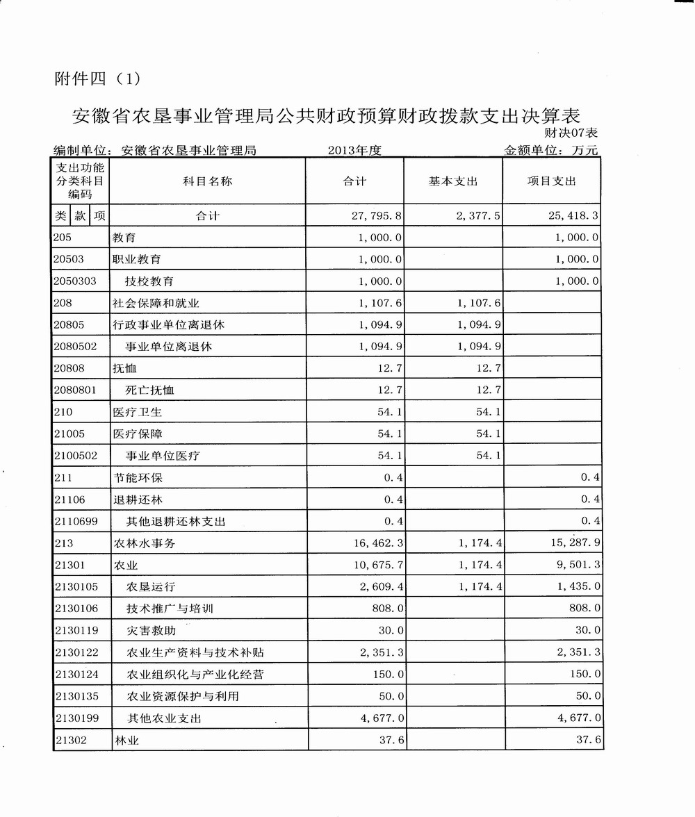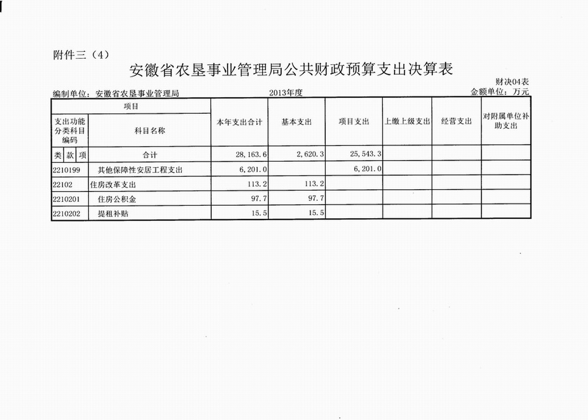 4. 安徽省農(nóng)墾事業(yè)管理局公共財政預算財政撥款支出決算表