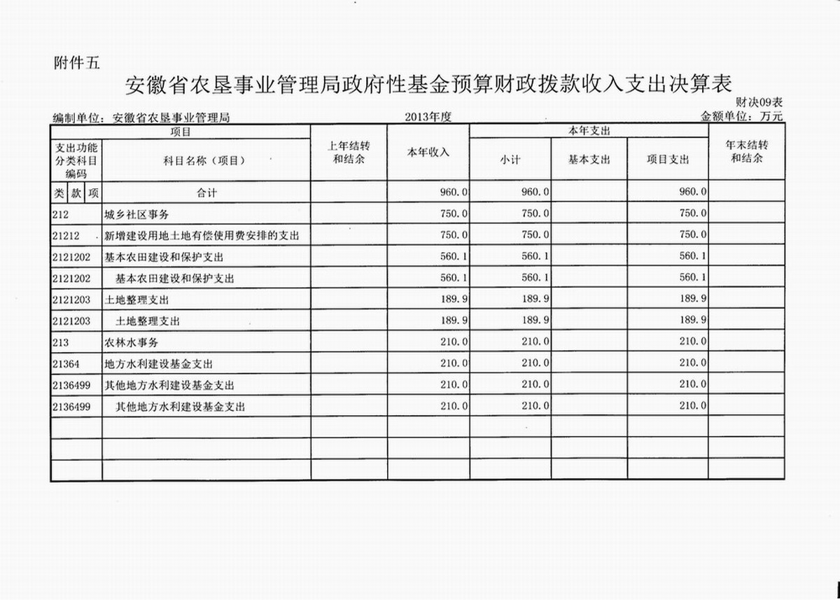 5. 安徽省農(nóng)墾事業(yè)管理局政府性基金預算收支決算表
