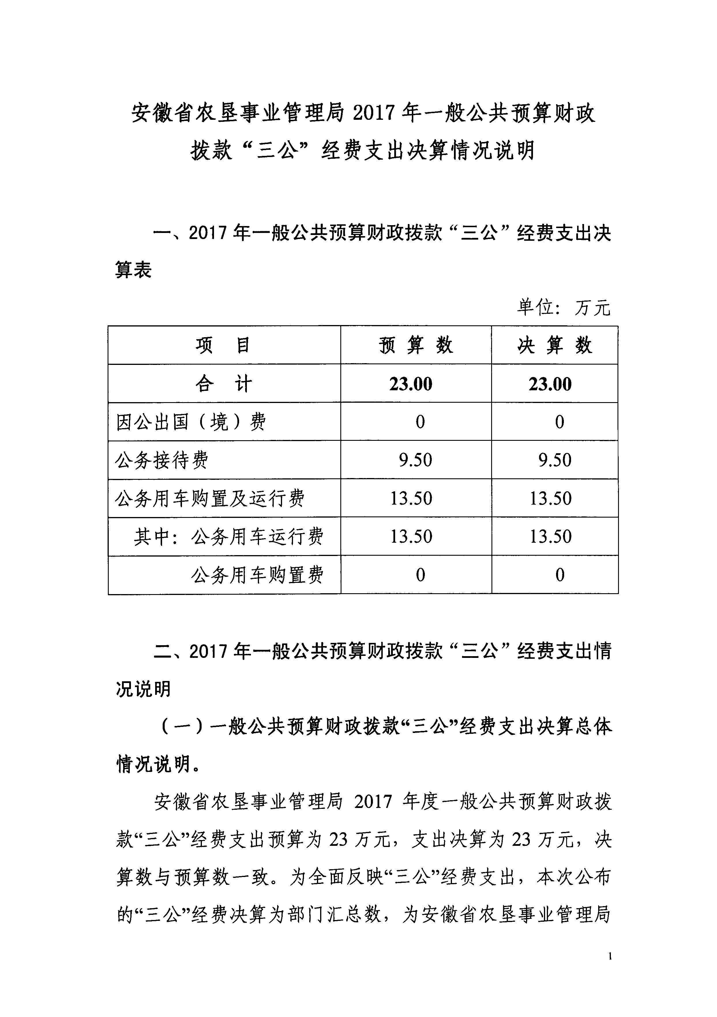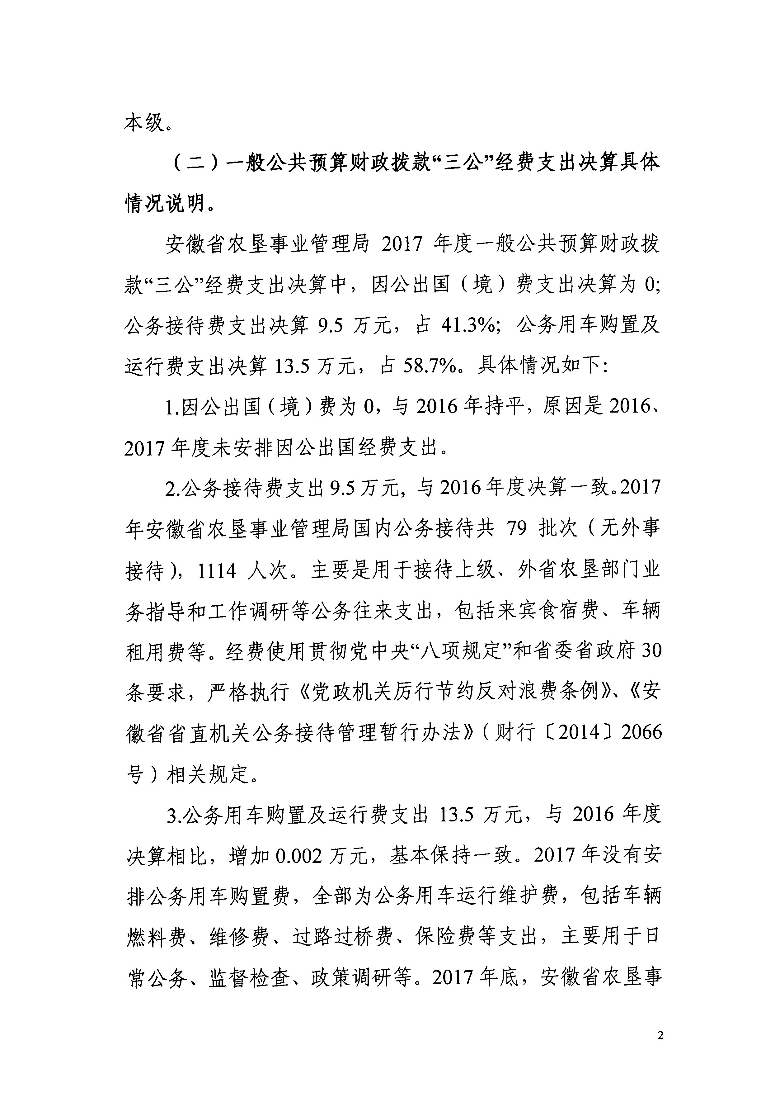 安徽省農(nóng)墾事業(yè)管理局2017年“三公”經(jīng)費(fèi)決算