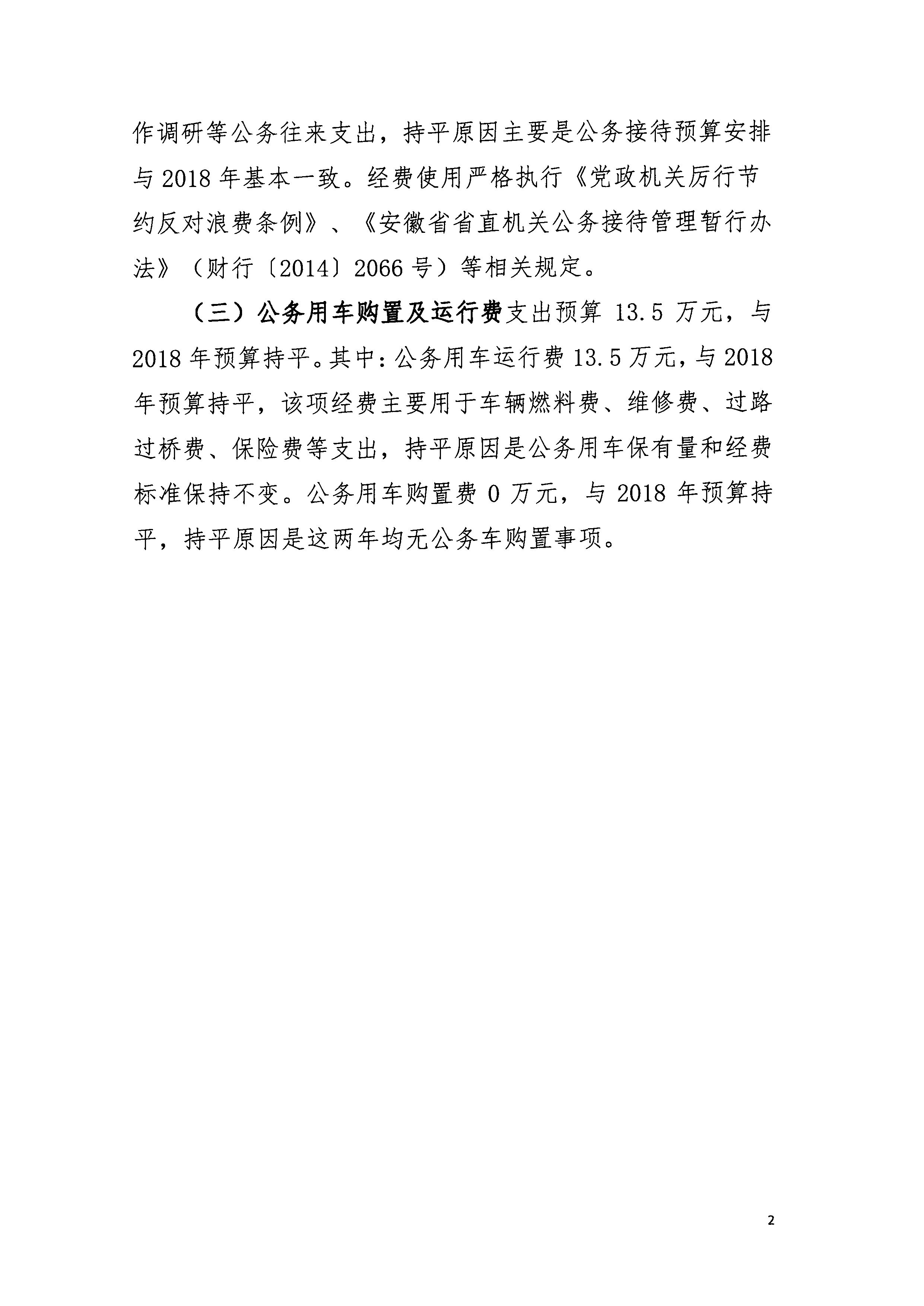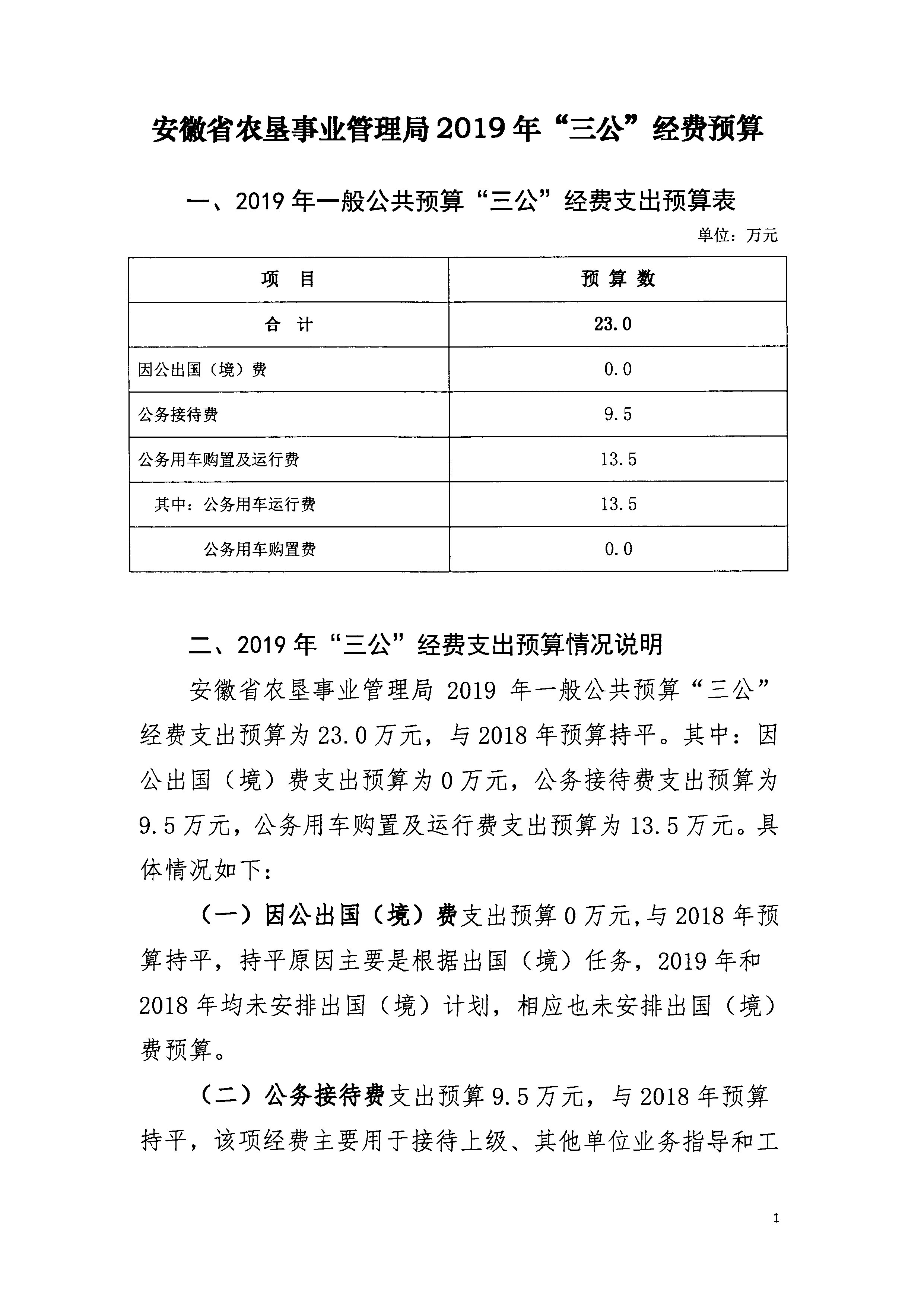 安徽省農(nóng)墾事業(yè)管理局2019年“三公”經(jīng)費(fèi)預(yù)算