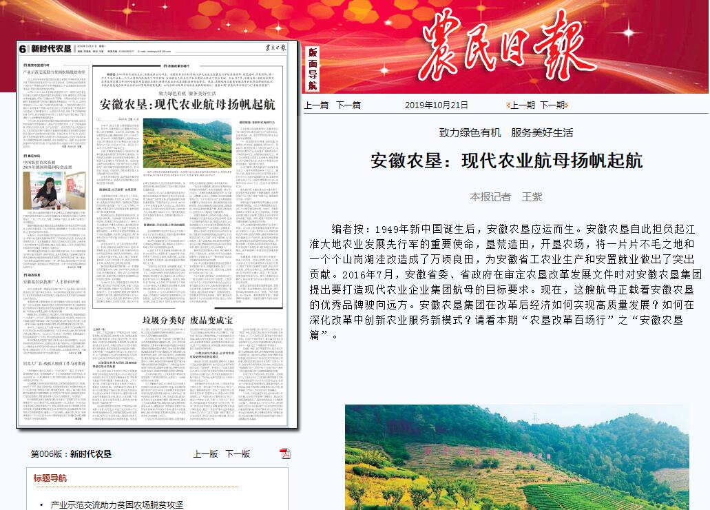農(nóng)民日報(bào)--安徽農(nóng)墾:現(xiàn)代農(nóng)業(yè)航母揚(yáng)帆起航